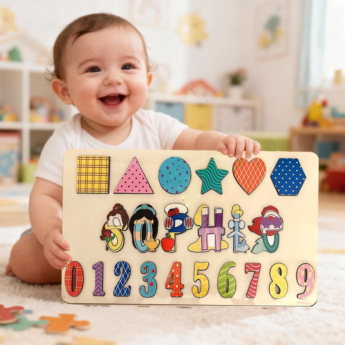 Personalized Baby Girl and Boy Gift and Wooden Handmade Name Puzzle Toy.